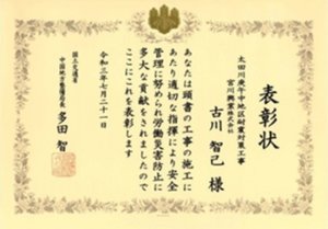 併せて、当現場担当技術者の古川智己が安全管理優良技術者として表彰されました。